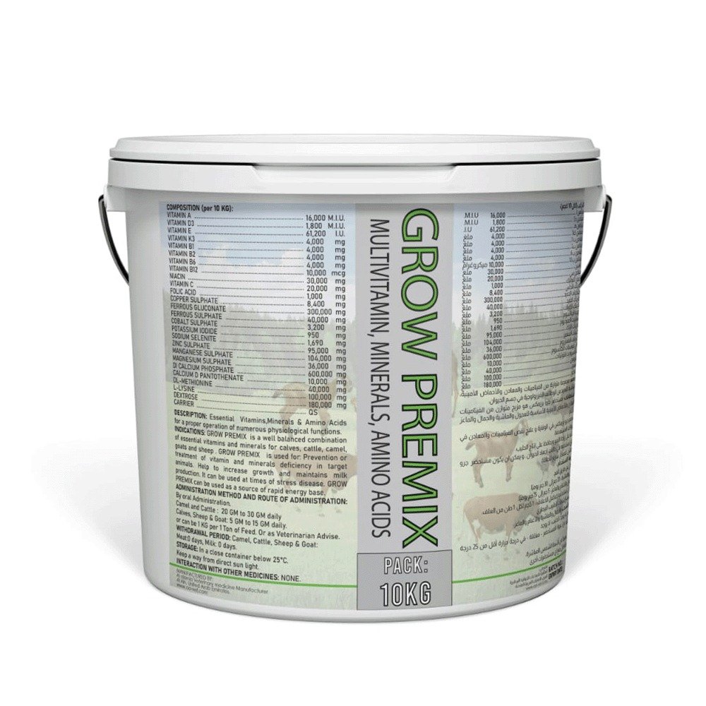 العجول، الأغنام والماعز: 5 غ يوميًا\للحيوان أو يمكن أن يكون 1 كغ لكل طن واحد من العلف. أو حسب نصيحة الطبيب البيطري.