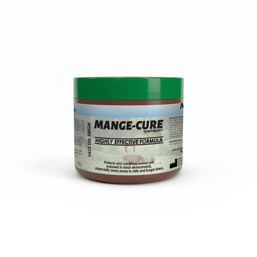 مانج-كيور مناسب لعلاج الجرب، السعفة والفطريات في الإبل، الأبقار، الأغنام، الماعز والحيوانات الصغيرة.