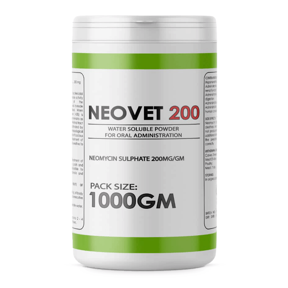 مؤشر للوقاية والعلاج من التهاب الأمعاء البكتيري في العجول والأغنام والماعز والدواجن الناتج عن بكتيريا حساسة للنيومايسين، مثل الإشريشيا كولي، والسالمونيلا، وكامبيلوباكتر.