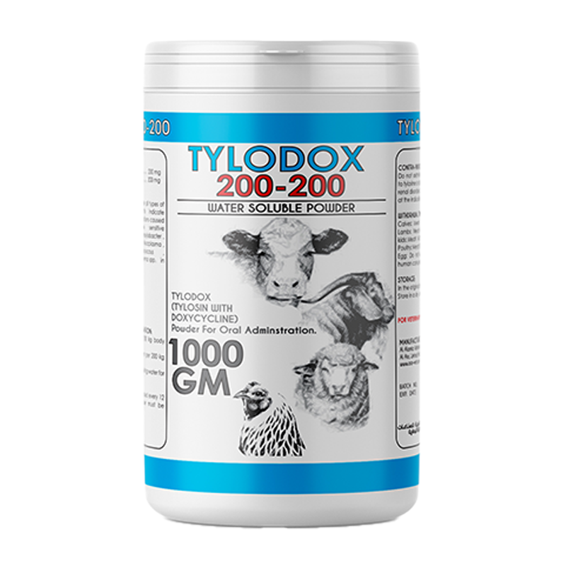 It is freely water-soluble, suitable for all types of potable water. It is used to indicate gastrointestinal and respiratory infections caused by tylosin- and doxycycline-sensitive micro-organisms, like Bordetella, Campylobacter, Chlamydia, E. coli, Haemophilus, Mycoplasma, Pasteurella, Staphylococcus, Streptococcus, Rickettsia, Salmonella, and Treponema spp. in calves, kids, lambs, and poultry.